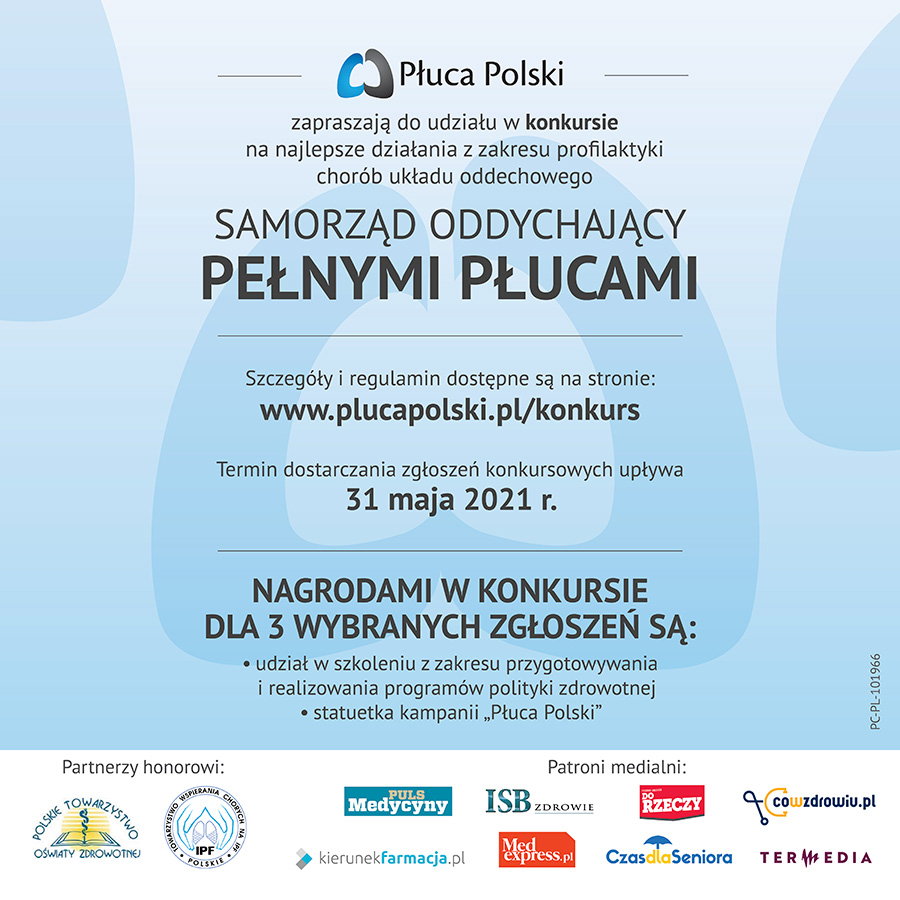 Rusza pierwsza edycja wyjątkowego konkursu, adresowanego do jednostek samorządu terytorialnego (JST), pt. „Samorząd oddychający pełnymi płucami”. W konkursie wyłonimy i nagrodzimy te z nich, które podejmują działania nakierowane na prewencję chorób płuc wśród swoich mieszkańców.