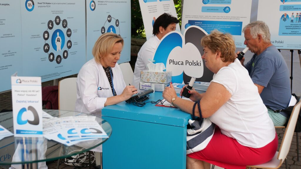 Bezpłatne badania spirometryczne w Krynicy-Zdroju cieszyły się bardzo dużą popularnością. Wszyscy, którzy wzięli udział w akcji, oprócz informacji na temat stanu zdrowia swoich płuc, otrzymali również materiały edukacyjne dotyczące takich chorób jak POChP i IPF.