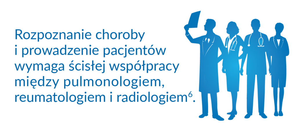 Leczenie postępujących chorób śródmiąższowych płuc przebiegających z postępującym włóknieniem stanowi wyzwanie, które wymaga interdyscyplinarnego podejścia, zwłaszcza współpracy pulmonologów, reumatologów i radiologów.[6]